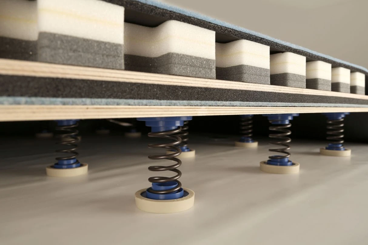 FIG zertifizierte Bodenturnfläche System Wiemers mit Stahlfedern. Ideal für den Wettkampfsport geeignet.