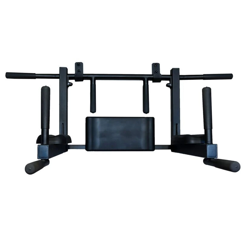 Lieferung inkl. 4 Aufhängehaken, die paarweise an der Wand angebracht werden können, um die Verwendung als Klimmzugstange oder Dip-Barren auf der individuell passenden Höhe zu ermöglichen.