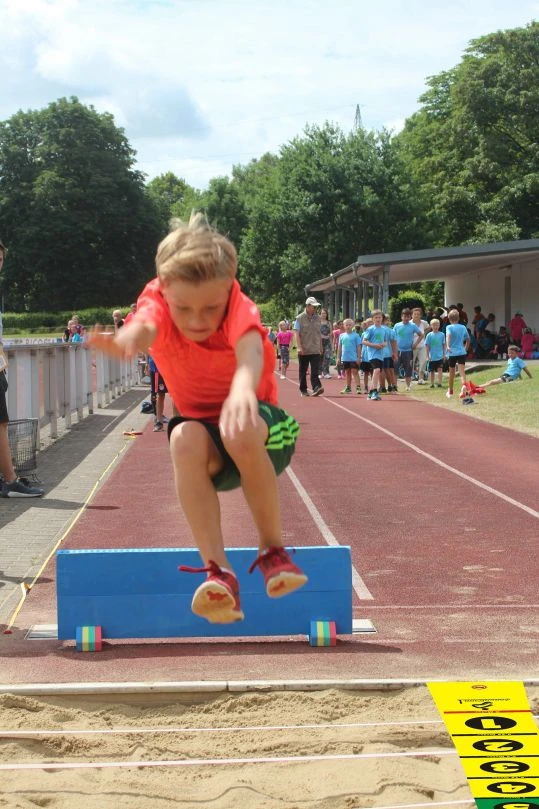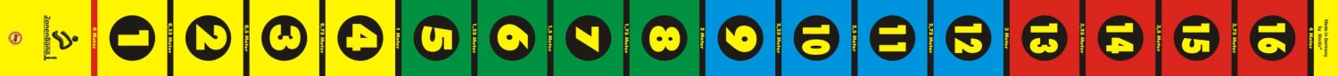 Das Zonenband besteht aus 24 Zonen, wie vom DOSB und DLV vorgegeben zum Ablesen der Weitsprungzonen und zur Motivation der Kinder und Jugendlichen.