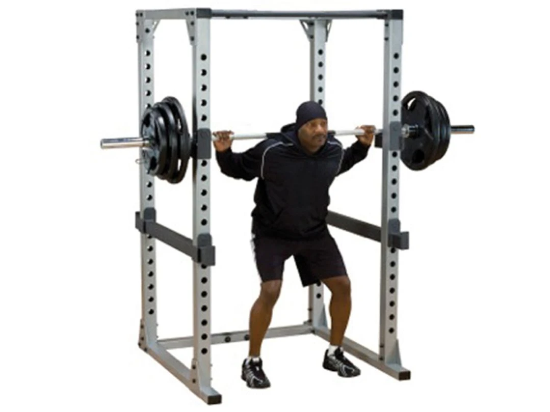 Massives Power Rack mit großer Bewegungsfreiheit. Spezialgehärtete Langhantelaufnahmen und Sicherheitsstreben sorgen für ein sicheres, einfaches und effektives Training.