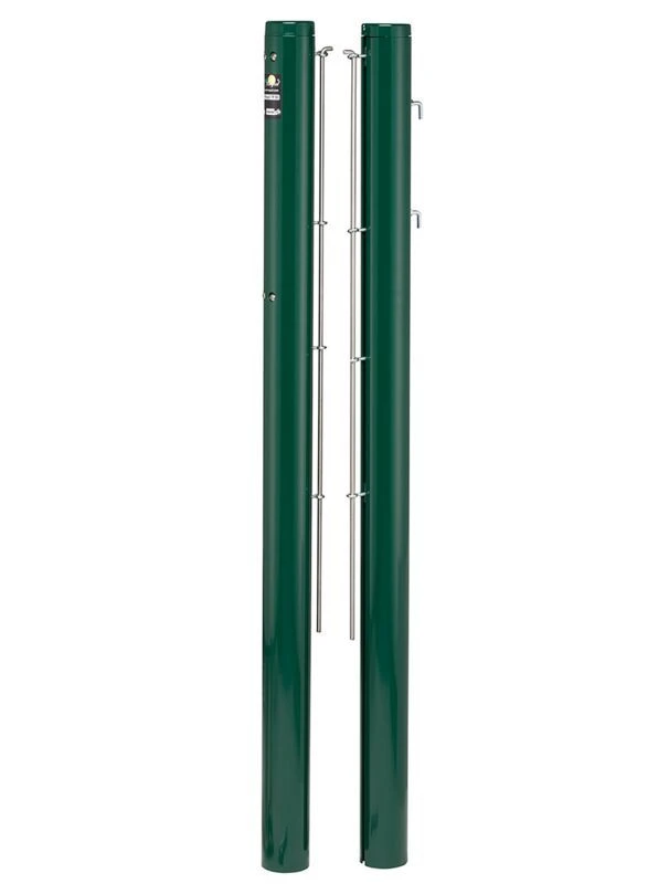 Die Tennispfosten aus Aluminium, bietet eine bequeme und einfache Installation und Befestigung des Tennisnetzes. Im inneren des Tennisnetzpfosten ist eine innenliegende Trapez-Spannmechanik integriert, die mit einem Aluminiumschlüssel betrieben werden kann. Dadurch lässt sich das Tennisnetz schnell und praktisch aufspannen. Zur Sicherung des Pfostens wurde eine steckbare Abdeckkappe aus Aluminiumguss mit einer angebrachten Sicherungskette entwickelt. Die Netzhaltestange wird mithilfe einer Nut befestigt und sorgt somit für zusätzliche Stabilität und Langlebigkeit.