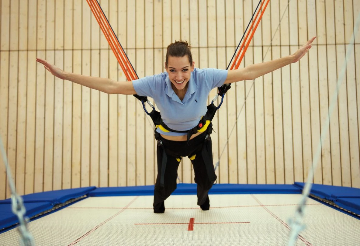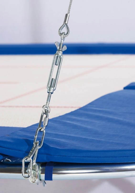 Die Bungee-Longe kann (auch nachträglich) an einem Master- oder Grandmaster-Trampolin von Eurotramp installiert werden. An dem Gerüst sind hochelastische Gummiseile befestigt, mit denen gesicherte Sprünge in höchster Höhe und mit höchster Sicherheit möglich sind.