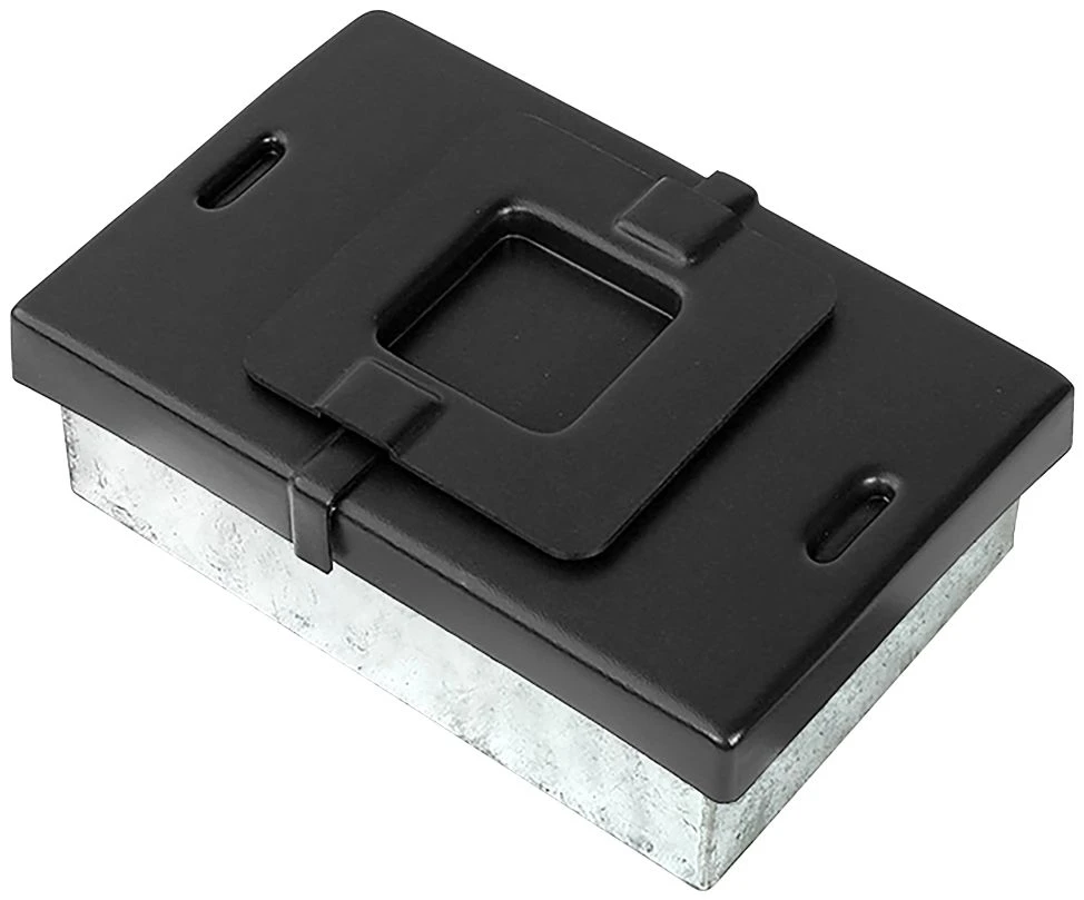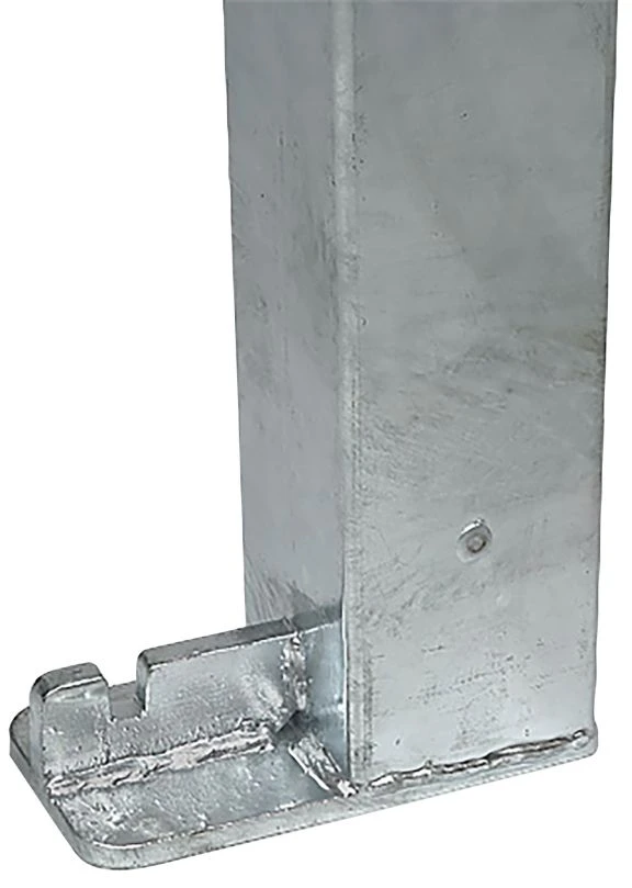 – Bodenplatten aus feuerverzinktem Stahl zum dauerhaften Aufschrauben auf ein Fundament