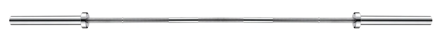 Wettkampfhantelstange aus hochwertiger, rostfreier Edelstahllegierung, die für größtmögliche Belastbarkeit und Flexibilität sorgt. Die Rändelung gewährleistet eine optimale Griffigkeit der Stange und ist nach IWF Richtlinien markiert.
