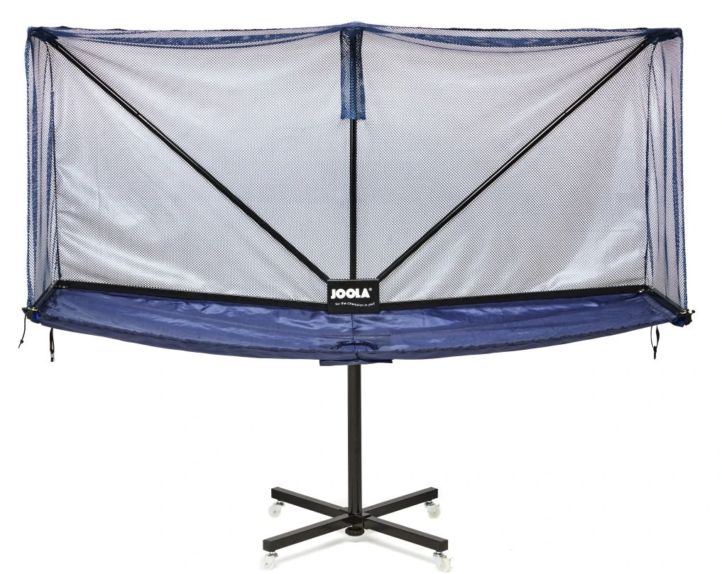 Tolles Auffangnetz für Trainings- oder Freizeit-Zwecke. Ideales Tischtennis-Vereinszubehör für Aufschlag- und Balleimertraining. Das Netz ist dank des Klapp-Mechanismus platzsparend in der Aufbewahrung. Das Auffangnetz ist sehr gut verarbeitet und hat ein stabiles Rollsystem für einfache Handhabung. Das Stahlrohrgestell + Auffangnetz hat ein Gesamtgewicht von etwa 15 kg.
