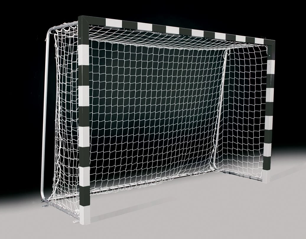 Das Handballtor aus Aluminium-Spezialprofil mit einer pulverbeschichteten Oberfläche hat zusätzliche Stahl-Verstärkungswinkel und dadurch eine enorme Stabilität. Das Bodenrohr sorgt zusätzlich für einen sicheren Stand. Geliefert wird der schwarz/weiße Torrahmen mit Bodenlaschen inklusive Befestigungsmaterial, Netzbügel aus Stahl und Netzhaken. Das Netz muss separat bestellt werden.