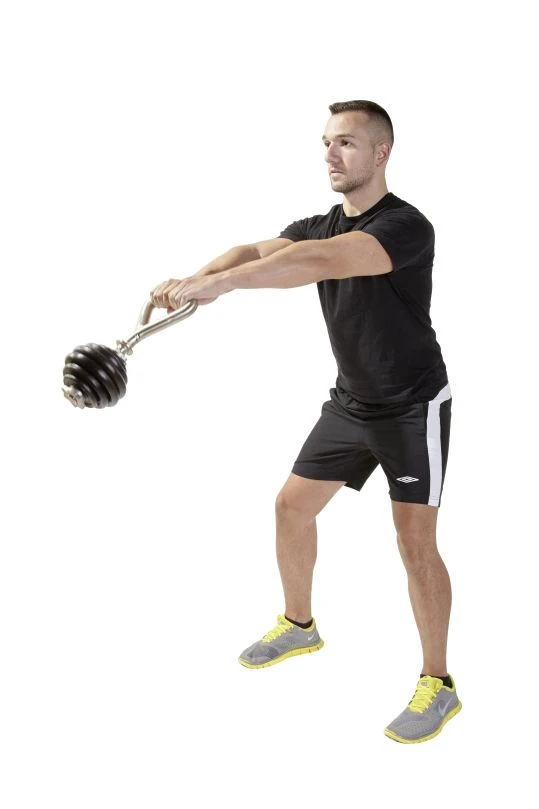 Gestalten Sie sich mit dem Kettlebell-Griff und Hantelscheiben ihre persönliche, variable Kettlebell. So können Sie sowohl für den Einstieg und zum Erlernen der Technik ein kleineres Gewicht auflegen und dies je nach Trainingserfolg in kleinen Stufen steigern.