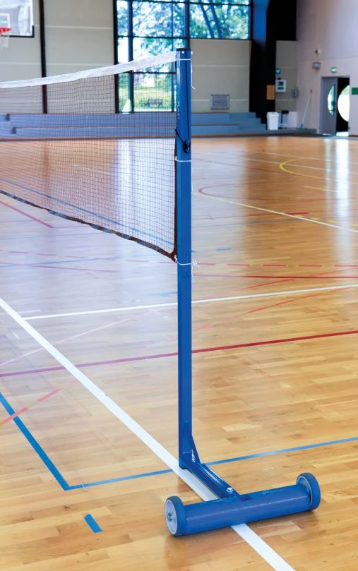 Toller mobiler Badminton-Pfosten für Schulen oder Einrichtungen. Der Stahl-Pfosten mit dem Profil 40 x 40 mm ist kunststoffbeschichtet und somit optimal für den Hallen bzw. Indoor-Bereich. Die Pfosten sind mit integrierten Transportrollen für den mühelosen und einfachen Transport der Badminton-Pfosten augestattet. Das Eigengewicht der Pfosten beträgt 25 kg. Bei dieser Reihe Badmintonpfosten haben Sie die Möglichkeit, das Gewicht mit einem Zusatzgewicht um 20 kg zu erhöhen. Die Höhe beträgt die üblichen 155 cm.