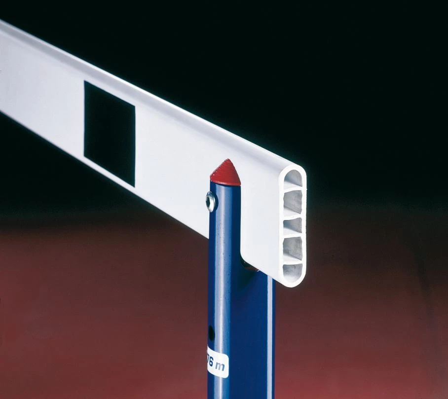 Die Wettkampfhürde ATHEN ist eine Hürde für die absolut höchsten Ansprüche. Der Bodenrahmen und die Füße sind eine robuste, wetterfeste Aluminiumkonstruktion. Die Latte ist aus PVC (120 cm breit, 7 cm hoch, 18 mm stark) gefertigt und hat abgerundete Kanten. Die Ausleger sind mit leichtgängigen, innenliegenden Gegengewichten ausgestattet. Der Ständer ist aus pulverbeschichteten Rundprofilen. Die exakte Höheneinstellung ist per Federdruckmechanik einfach und unkompliziert. Die Hürde wurde vom internationalen Leichtathletikverband IAAF zertifiziert und darf bei offiziellen internationalen Wettbewerben eingesetzt werden.