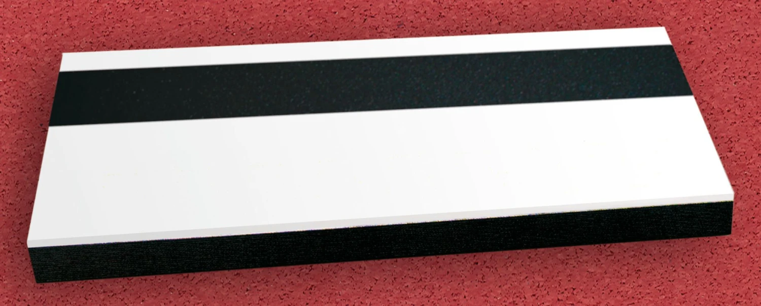 IAAF zertifiziert und DLV geprüft. Der Einlegestreifen aus Gummi kann gegen Wettkampfbretter mit Plastilin ausgewechselt werden. Geeignet für den Schulsport, für Vereine und Wettkampfsport.
