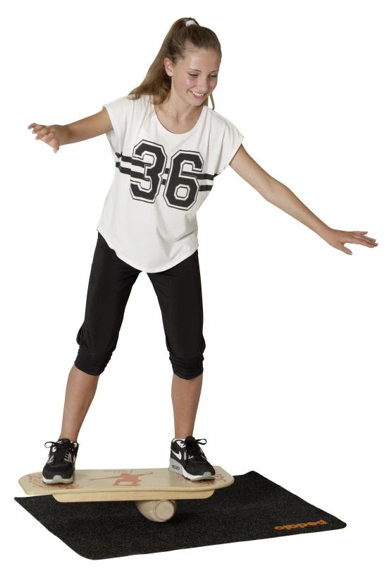 Das Balancebrett des Pedalo Surf wird durch die beiden integrierten Kufen auf der Unterseite des Brettes auf der Rolle geführt. Die ovale Form der Rolle ermöglicht das Rollen, Kippen und Drehen in alle Richtungen. Die integrierten Kufen und die Aussparungen auf der Rolle bieten dem Übenden die notwendige Kontrolle und eine gewisse Führung. Die an der Unterseite angebrachten Gummipuffer dienen als Anschlag und begrenzen die seitlichen Bewegungen. Die Antirutsch Oberfläche und die beiliegende Bodenmatte sorgen für guten Grip und zusätzliche Sicherheit.