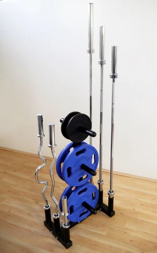 Perfekte Hantelscheiben- und Hantelstangen-Aufbewahrung für das Studio oder zu Hause. Dank des intelligenten Designs lassen sich auf den unteren 4 Hantelscheiben-Pins auch Scheiben mit jeweils 45 cm Durchmesser platzieren. Zusätzlich zu den Hantelscheibenaufnahmen verfügt der Ständer über 6 senkrechte Hantelstangen-Halterungen für Stangen mit 50 mm Durchmesser. Ein extrem stabiler 7 x 5 cm starker Stahlrahmen sorgt beim Be- und Entladen für die nötige Stabilität.