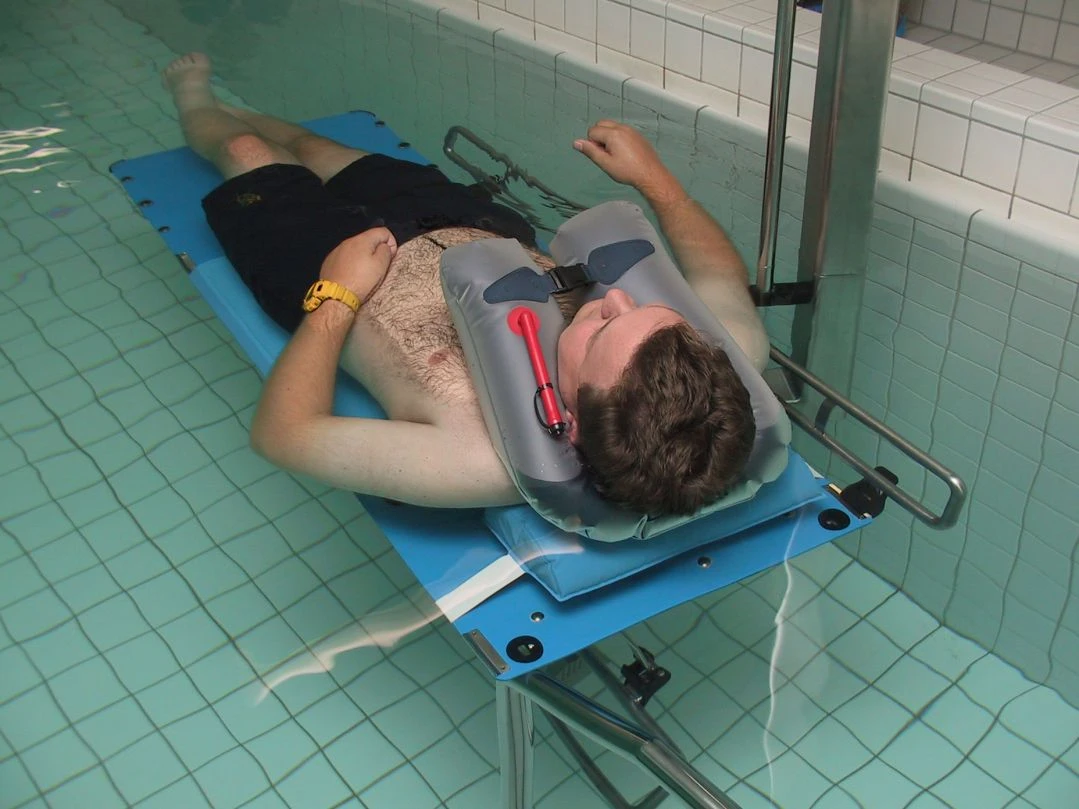 Bezogen ist der Schwimmkragen zusätzlich mit einer Schutzfolie aus Polyurethan (PU) mit seidiger Oberflächenstruktur, die hautfreundlich ist und keine Allergien auslöst. Sie macht ihn ferner resistent gegen Reinigungs- und Desinfektionsmittel sowie Badezusätze.