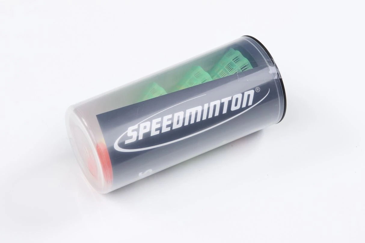 Der CROSS Speeder von Speedminton ist speziell für das Spiel Draußen und für längere Distanzen ausgelegt. Im Vergleich zu herkömmlichen Badminton- und Federbällen ist der Cross kleiner und schwerer (ca. 9,3 g), was ihn automatisch weniger anfällig für Wind und Wetter macht. Mit bis zu 300 km/h Top Speed kann er für schnelle und sehr weite Distanzen von 20 bis zu 40 m eingesetzt werden. Alle Speedminton Speeder werden ausschließlich in Deutschland produziert, unter Verwendung von recycelbarer High-Tech Kunststoff. Der wiederverschließbaren 3er Dose liegt ein Windring für zusätzliche Stabilität bei.