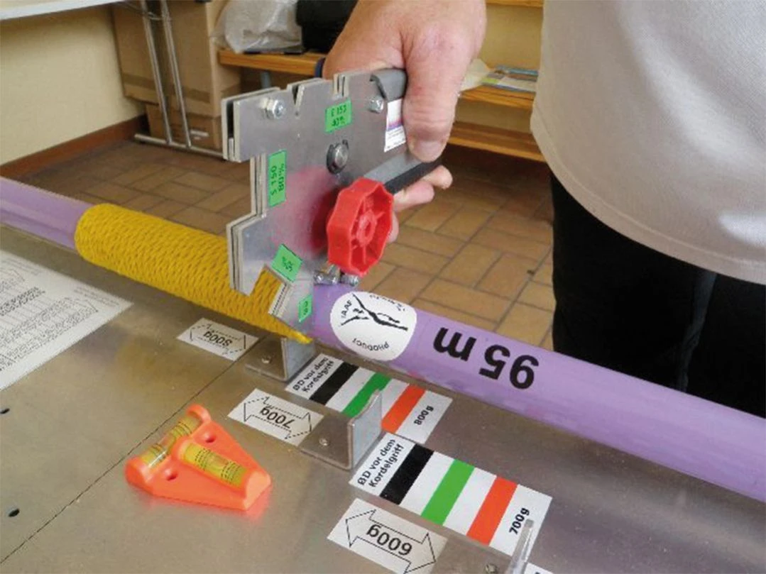 Die Speermesslehre ist zur Überprüfung der regelgerechten Durchmesser – besonders der Bereiche 40%, 80% und 90%. Für ein vollständiges Messsystem wird als Zubehör eine Speermessbox empfohlen.