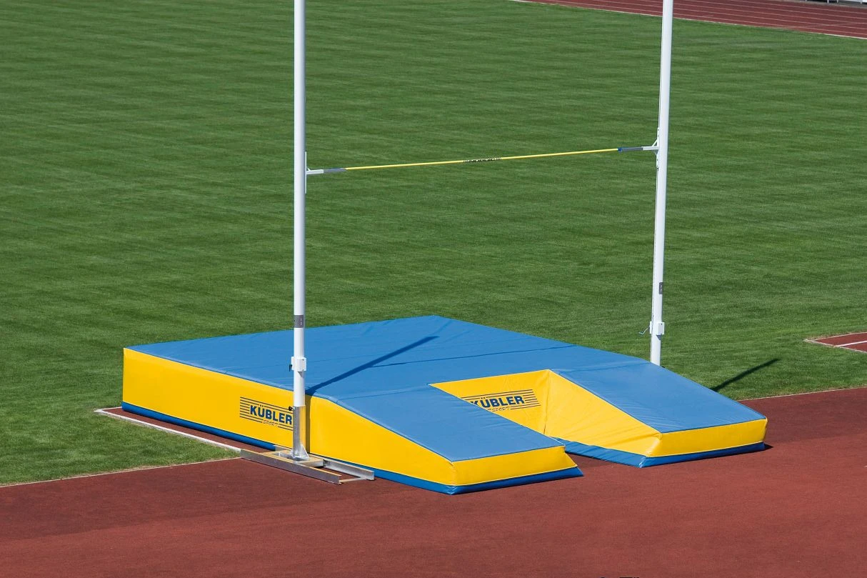 Stabhochsprungständer, welcher sich für den Trainings- und Wettkampfbetrieb mit höhenverstellbaren Auflagen und Höhenanzeige in Augenhöhe eignet. Die Aluminiumkonstruktion kann in den Führungsschienen verstellt werden.