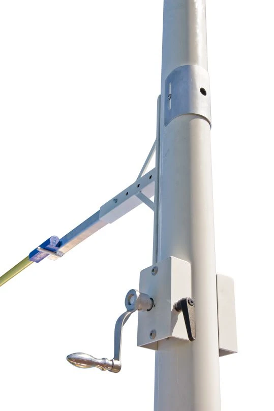 – Durch Kurbel in Verbindung mit Zahnriemensystem und einem innenliegenden Getriebe höhenverstellbar