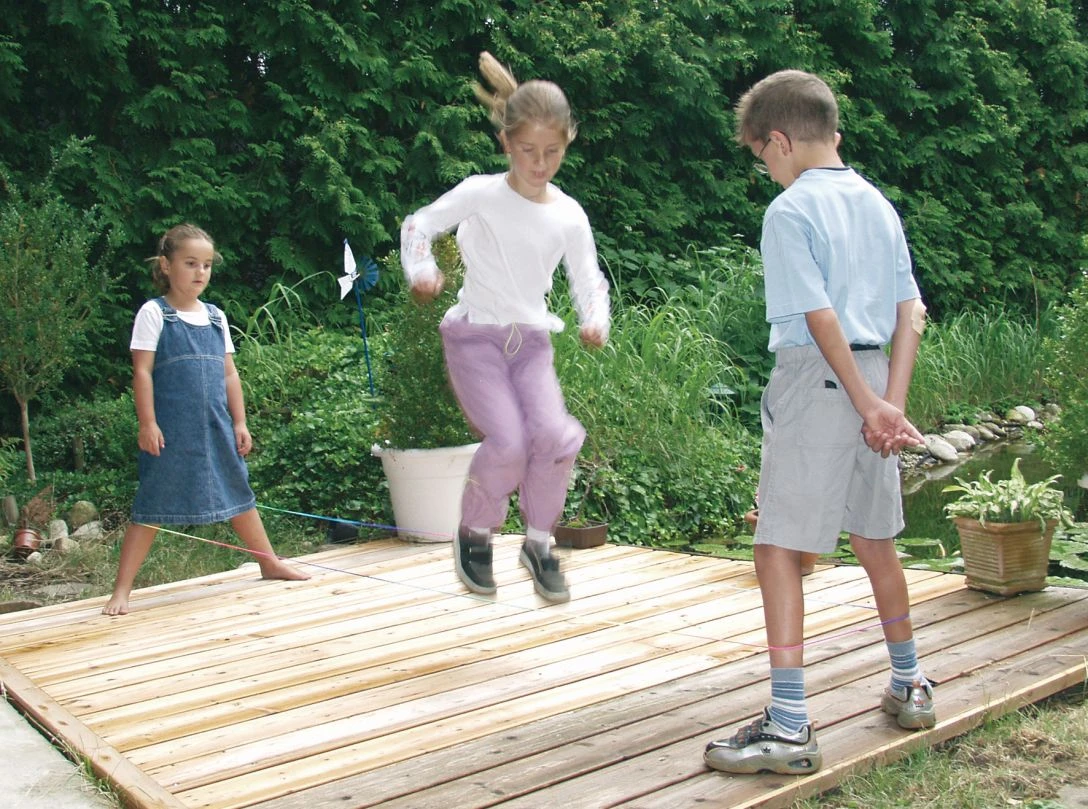 Gummi Twist ist wohl der Klassiker unter den Straßenspielen. Um Gummi Twist zu spielen, benötigt man einen langes Hüpfgummi. Das Spiel ist für mindestens drei Teilnehmer gedacht. Hüpft man alleine oder zu zweit, benötigt man zum Befestigen des Hüpfgummis im Freien eine bzw. zwei Befestigungsmöglichkeiten (Pfahl, Straßenschild, Stuhl, Mülltonne etc.). Ermöglicht werden kann es auch durch Hakenschrauben an vier geeigneten Stellen, an denen man den Gummi einspannen kann. In der Regel jedoch wird das Hüpfgummi um die Füße zweier Teilnehmer gespannt und gedehnt. Diese stehen sich, die Gesichter zugewandt, einander gegenüber. Ein dritter Mitspieler hüpft nun in, auf oder zwischen diesem Hüpfgummi in vorher verabredeten Rhythmen. Begeht er einen Fehler, so ist der Nächste an der Reihe. Gelingt ihm der fehlerfreie Ablauf, so wird der Schwierigkeitsgrad erhöht. Die Standardhöhen sind dabei Knöchelhöhe, Kniehöhe und Schritthöhe.