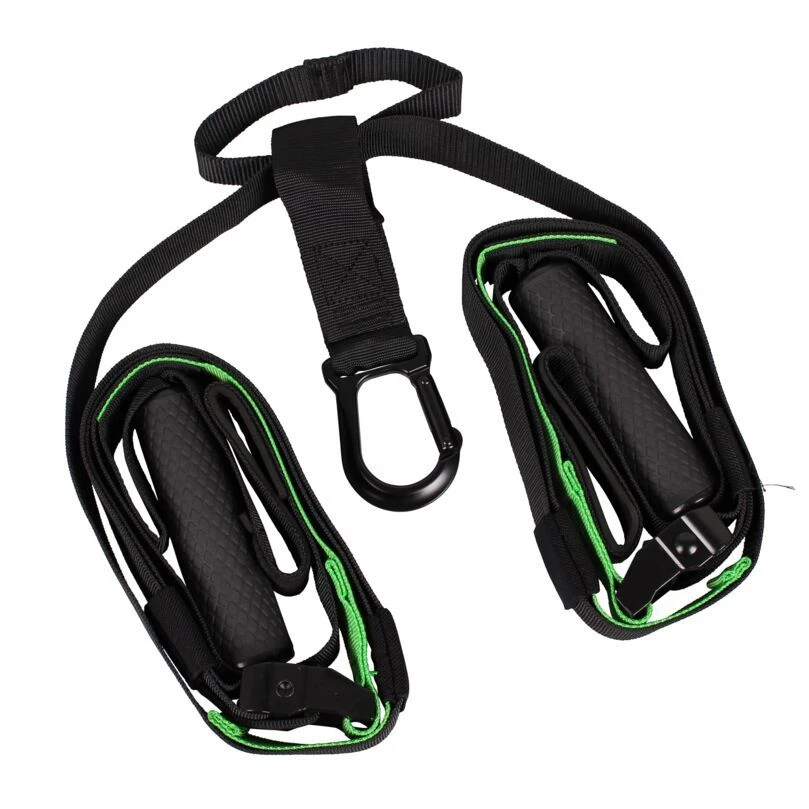 Der Schlingentrainer ist der optimale mobile Krafttrainer auf kleinstem Raum. Der Schlingentrainer ist hochwertig verarbeitet, hat ein breites Gurtband (4 cm) und stabile Metall-Karabiner. Die Länge lässt sich leicht, intuitiv und stufenlos verstellen, von 130 bis 260 cm. Die Griffe sind aus angenehmem, rutschfestem Gummi, die Fußschlaufen sind verstärkt und gepolstert.