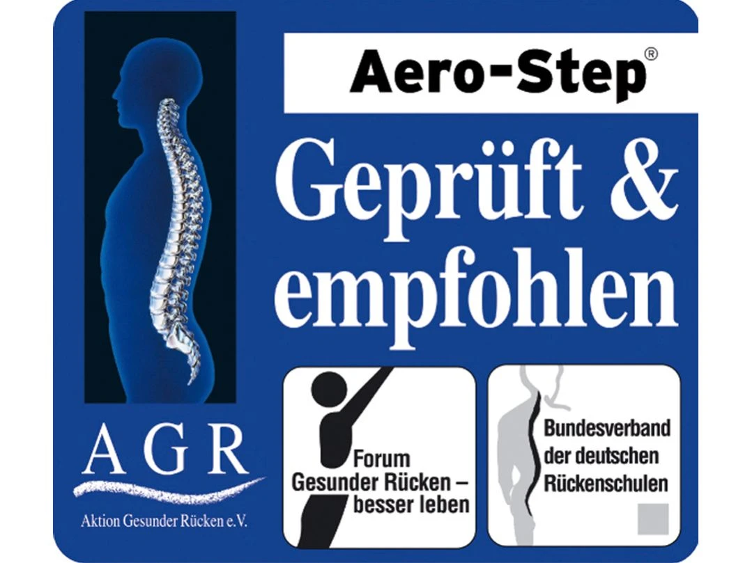 Balance-Trainer für Fitness und Therapie zur Verbesserung von Koordination, Balance und Gleichgewicht. Die genoppte Oberfläche sorgt zusätzlich für eine sanfte Massage und steigert die Durchblutung. Egal ob stehend oder liegend, der luftgefüllte Aero Step bildet mit dem Luftkammersystem eine instabile, rutschfeste Unterlage und fordert daher den Körper ständig zur Stabilisierung und kräftigt dabei die tiefer liegende Muskulatur.