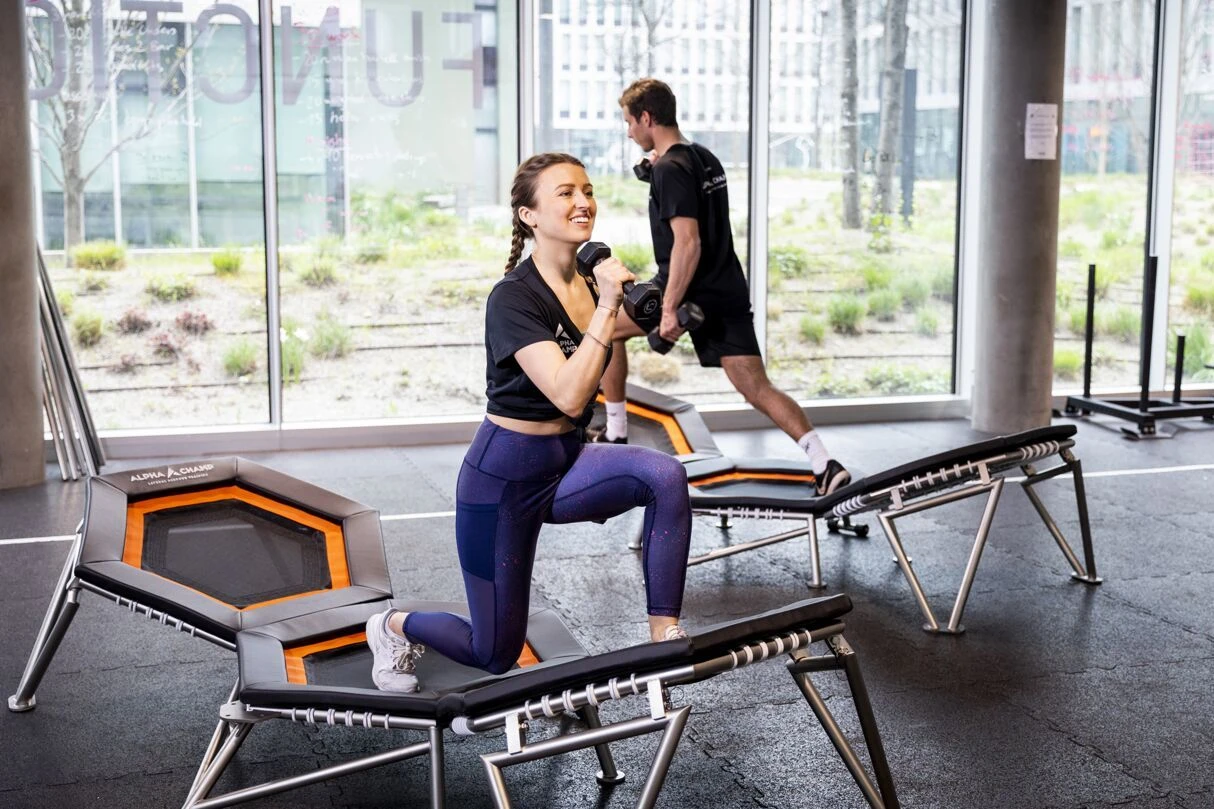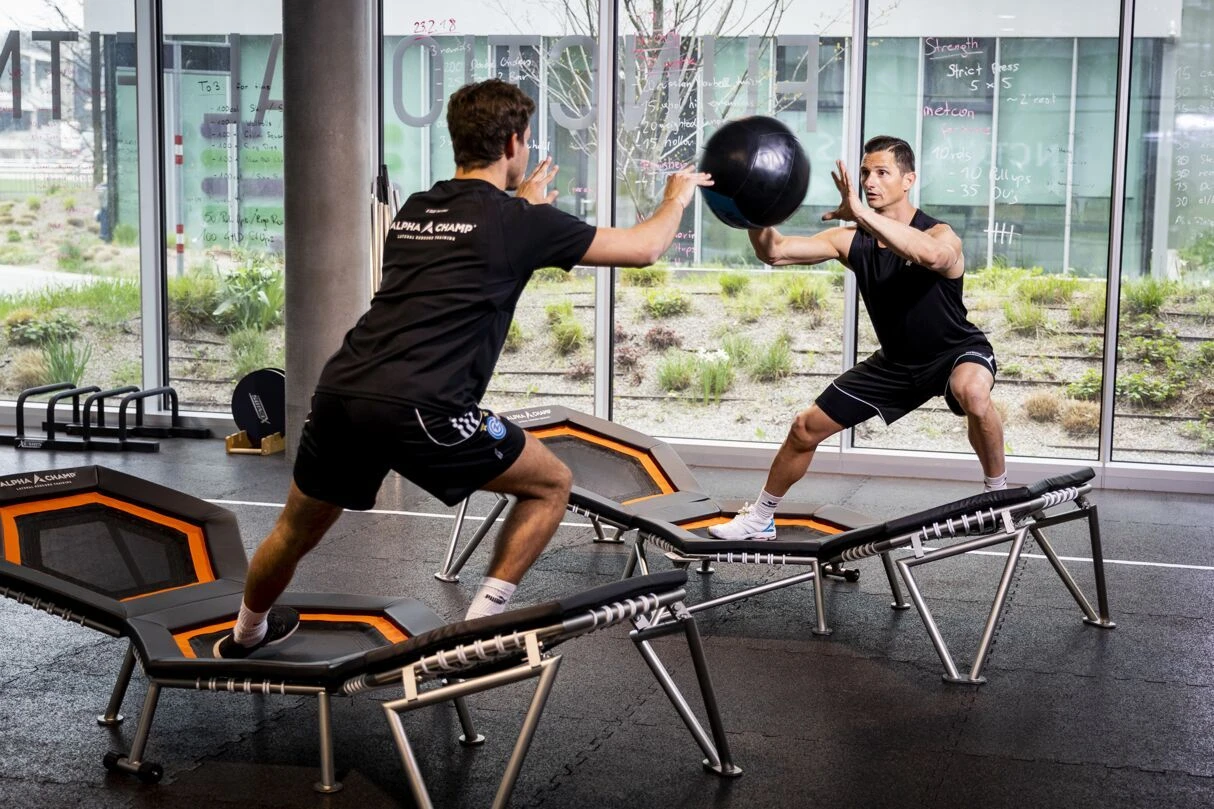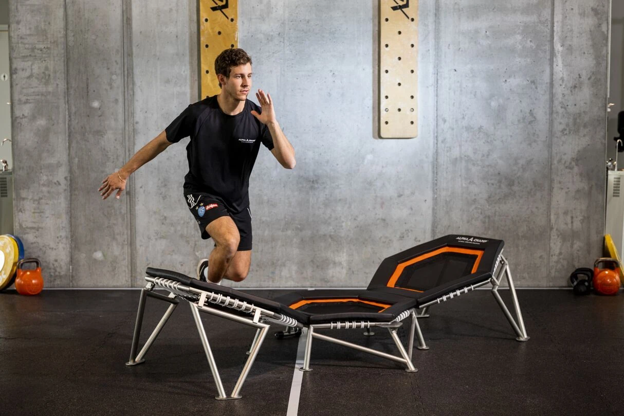 Das ALPHA CHAMP™ Triple Trampolin wurde in Kooperation mit EUROTRAMP® und dem Institut für Sportwissenschaft der Universität Wien entwickelt und ist bereits vielfach im Einsatz für das Training im Teamsport, in der Unfall-Prävention, dem Group Fitness sowie in der Rehabilitation nach Sportverletzungen. Auch wird das gezielte Training von speziellen Belastungsabläufen vieler Sportdisziplinen unterstützt. Das hochwertige Trainingsgerät begeistert seine Anwender durch neue, vielfältige Trainingsmöglichkeiten und Freude an individuellen Workouts sowie Group Fitness.