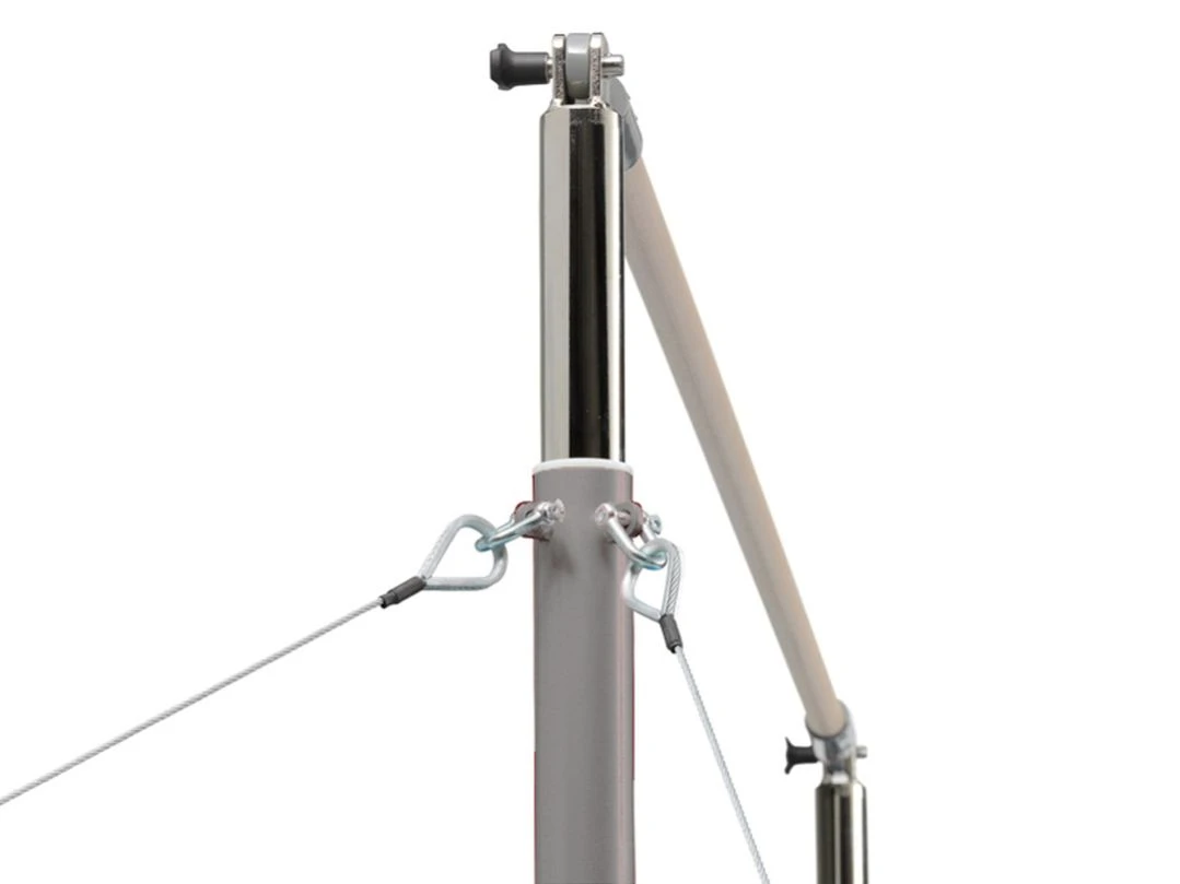 Die Verspannung macht aus einem freistehenden Stufenbarren einen Spannstufenbarren. Bei Lieferung sind die Seile, Ketten und Schnellspanner passend zum freistehenden Spieth Stufenbarren Club, Artikel G2948 enthalten.