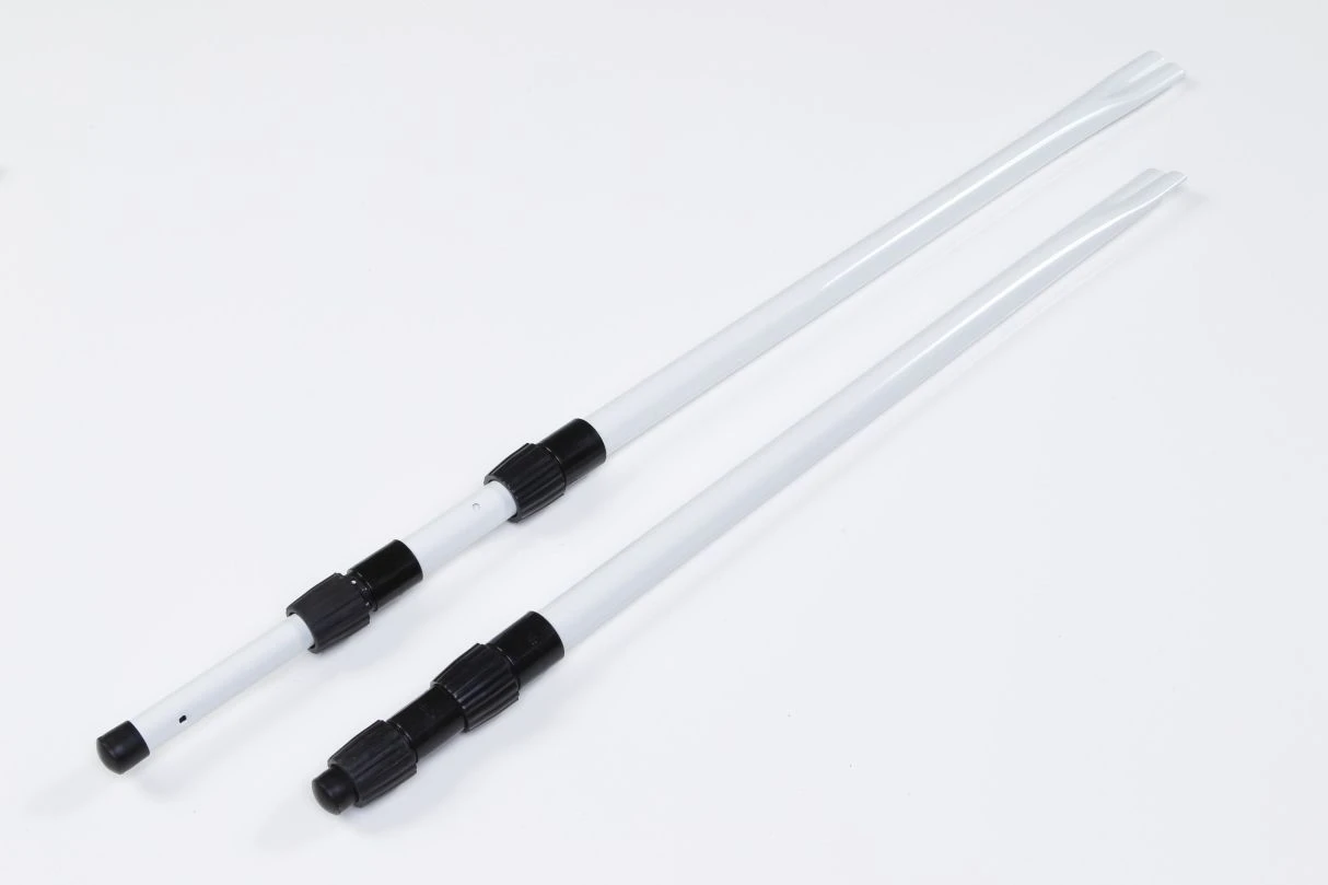 – 2 höhenverstellbare Teleskopstangen mit Spannschnüren und Bodenankern