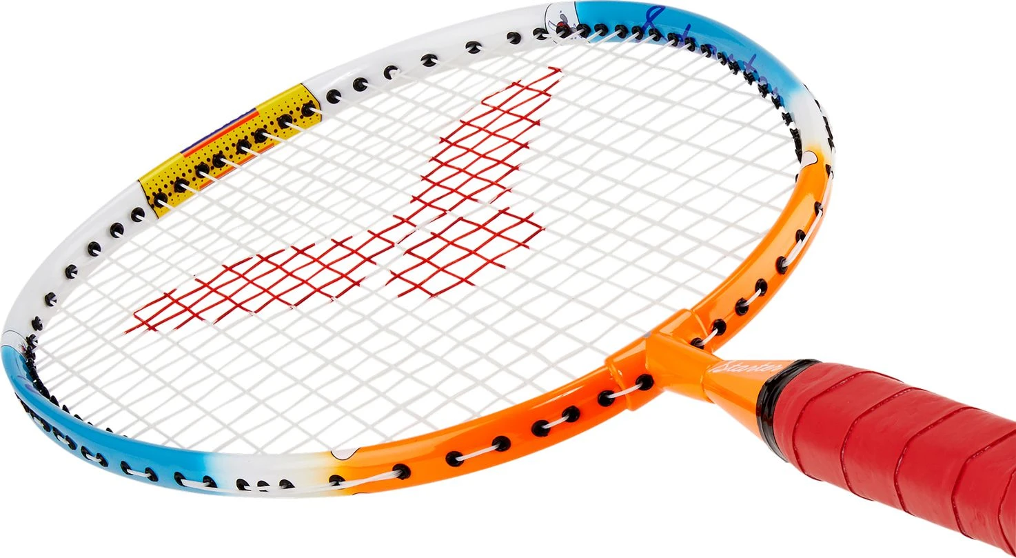 Der Victor® Badmintonschläger STARTER ist ein schaftloses Badminton-Racket aus Stahl / Aluminium mit tropfenförmigem Aluminiumkopf und haltbarer multifiler Kunstsaite. Der verkürzte Griff (43 cm) ist speziell auf Kinderhände zugeschnitten. Optimales Badminton-Racket für unsere kleinen Anfänger und Einsteiger ab einem Alter vno 4 bis 6 Jahren. Gewicht ca. 90 g.