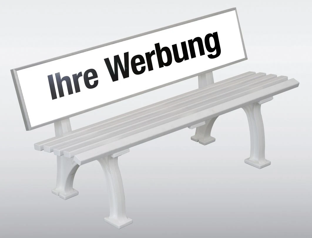 Sehr robuste und wetterfeste Sitzbank aus Kunststoff mit GFK-Rückenlehne. Belattung aus fünf stabilen Mehrkammerprofilen, Füße aus Vollkunststoff. Zerlegbare Ausführung. Längen: 150 cm, Farbe: weiß.